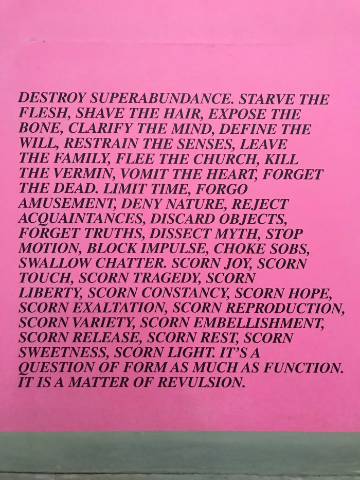 Another American artist, Jenny Holzer, 1950 originally posted across NYC, each essay has 100 words and 20 lines that reflect her title piece, “Inflammatory Comments” reflecting political and moral positions intended to instill a sense of urgency in the reader.