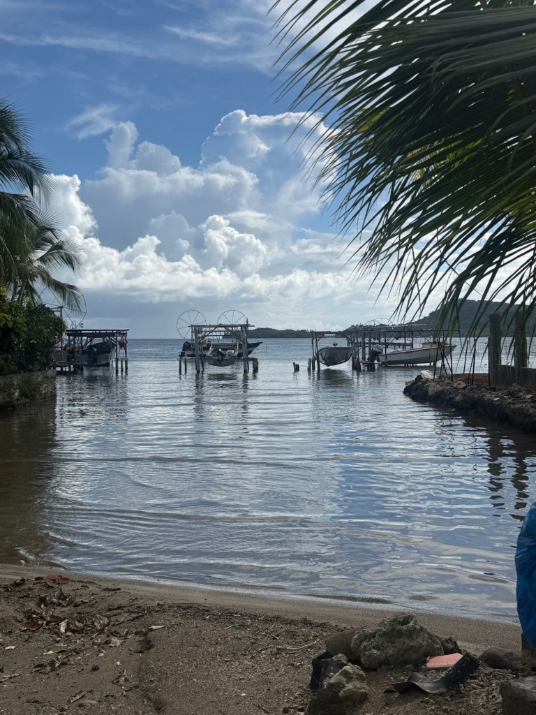 Walking around Vaitape, capital of Bora Bora is eye-opening. Unlike Hawaii, these islands are authentic. From the one lane paved road, there is an abundance of local fruit: bananas, mangoes, papayas and groves of pineapple too. Many of the houses have corrugated roofing, but they all have a boat landing if they’re on the waterside and many have cars or scooters, reflecting resources. The dogs, cats and chickens cross the road, always one dog is limping. From the one lane road, I passed a dentist, an eye doctor, & vet medicine, likely visiting services. You see everything on the road. A young man pulling a wheelie on his motorcycle, a two year-old fast asleep in mother’s lap on scooter, a tourist filming from back seat of scooter, a Mother and 2 kids riding a scooter. A bicyclist with baguette in the basket. Everyone wears helmets, likely French law. And dead crabs dot the road. If you want to find the market on Sunday look for the cars and you’ll find Chin Lee, a general store similar to Hasegawa in Hana, Maui.