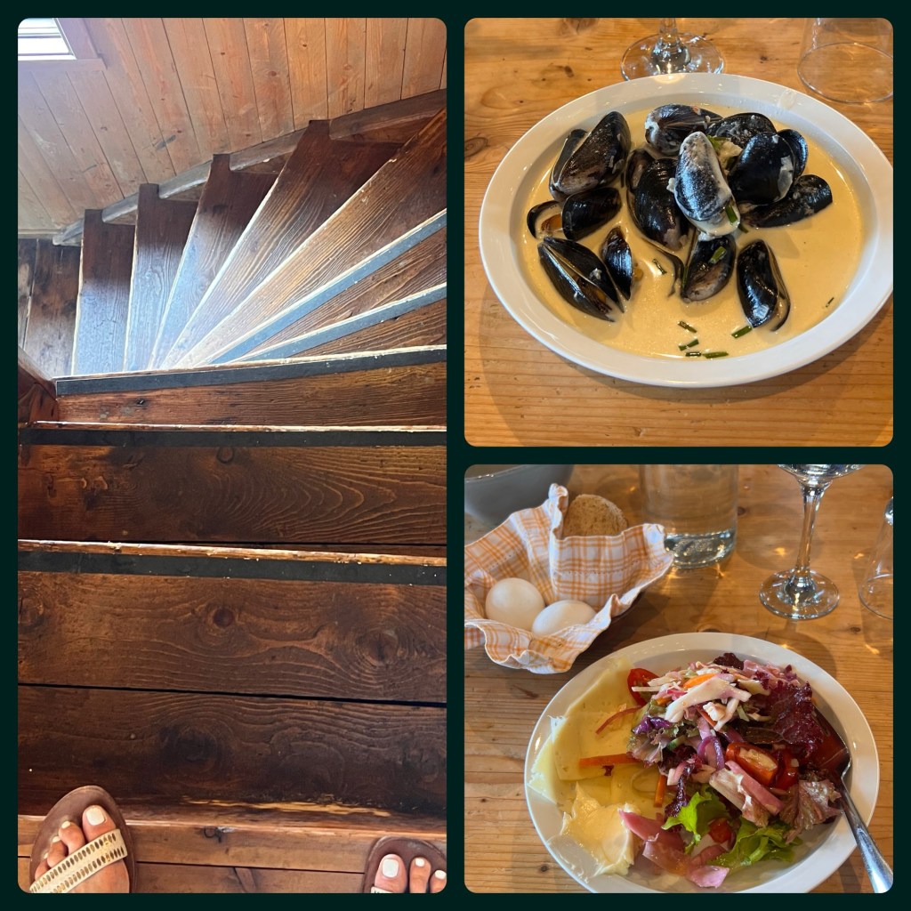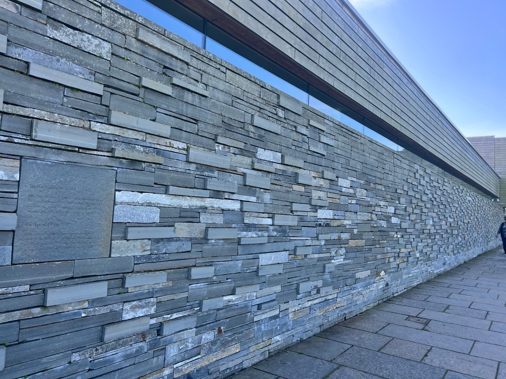 During a sunset, walk around the hotel just outside of town there is a maze of public pathways surrounded by rock walls and rod iron gates into private property. The neighborhood is quite posh with mansions and fancy cars in the driveway. Exterior walls of buildings & homes to roofs & walls all made of slate, mined in the area. Tourism has replaced mining.