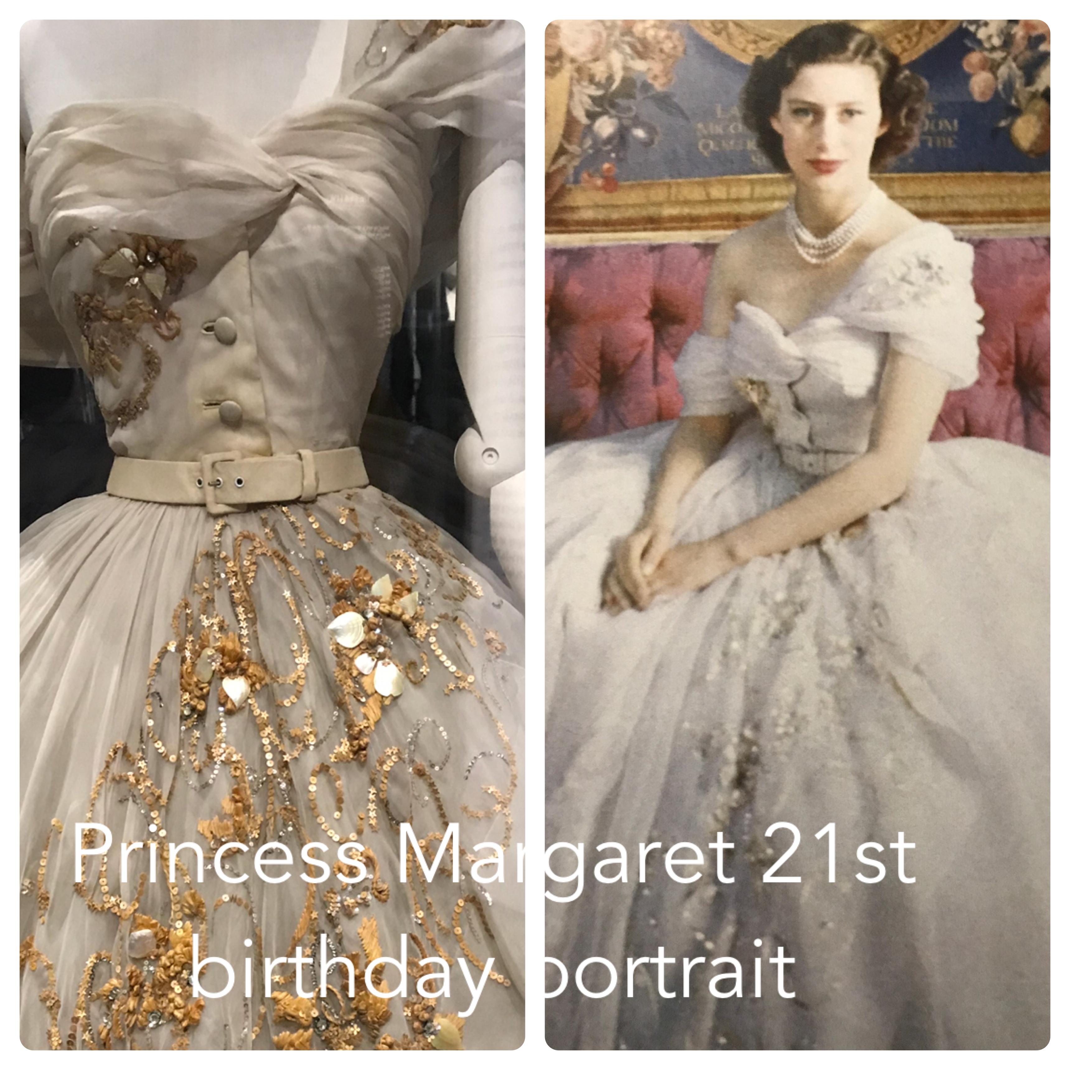 Famously, in 1951, Dior designs a dress (silk organza, mother-of-pearl and sequins) for Princess Margaret’s 21st official portrait, photographed by Cecil Beaton.