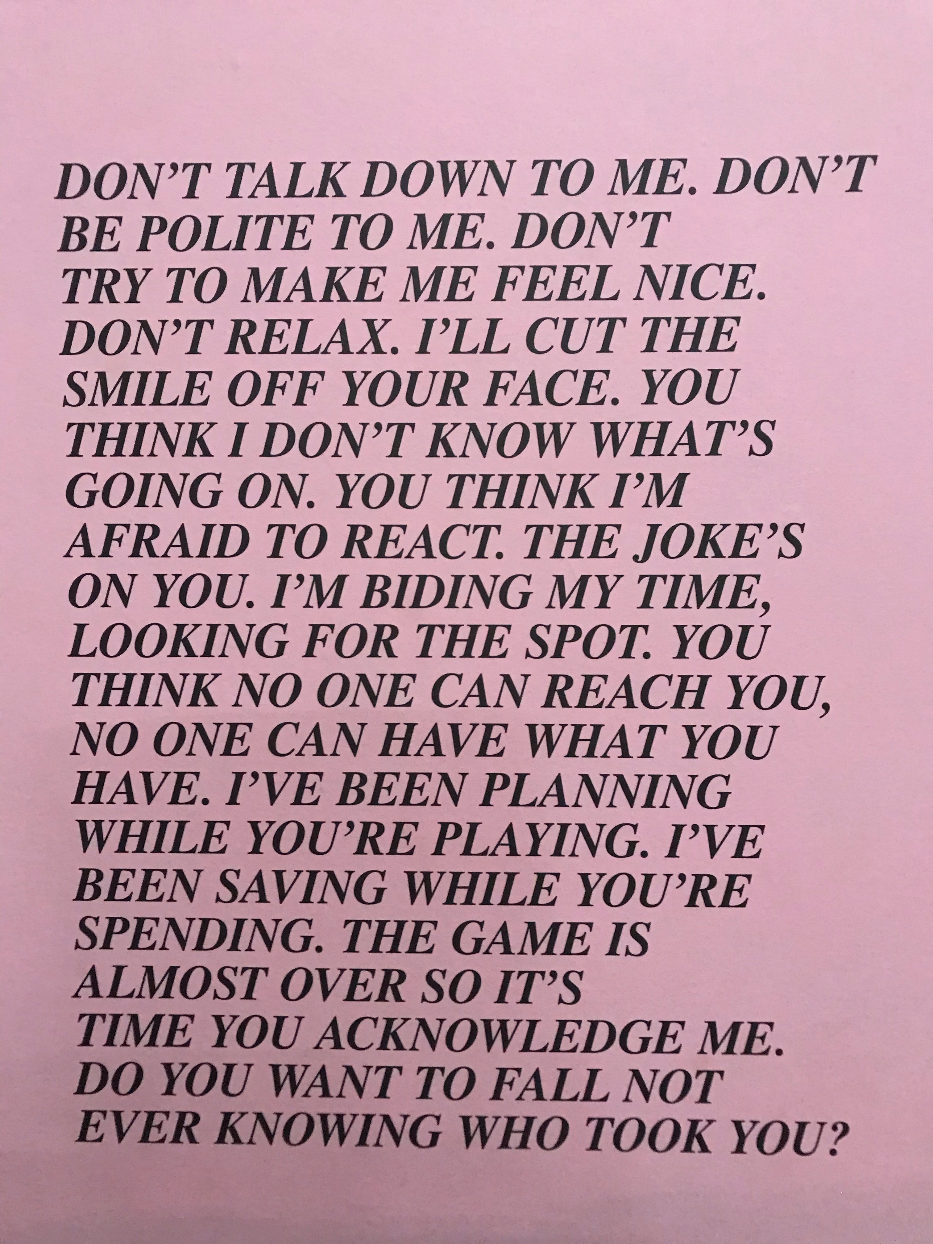 Another American artist, Jenny Holzer, 1950 originally posted across NYC, each essay has 100 words and 20 lines that reflect her title piece, “Inflammatory Comments” reflecting political and moral positions intended to instill a sense of urgency in the reader.