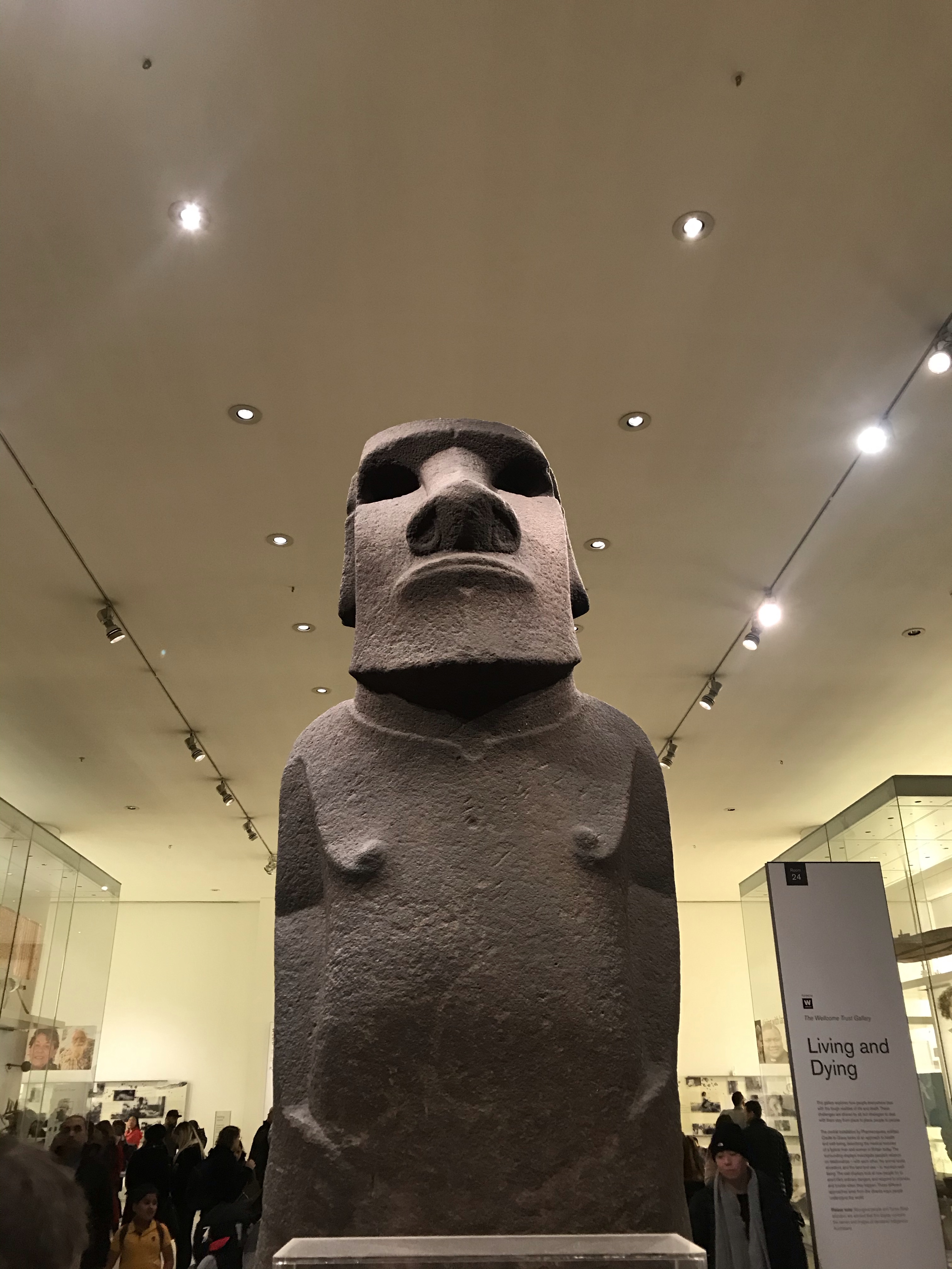 The Easter Island stone figure is known as the stolen one from Easter island. Currently in negotiations between the Polynesian peoples and the Brits.