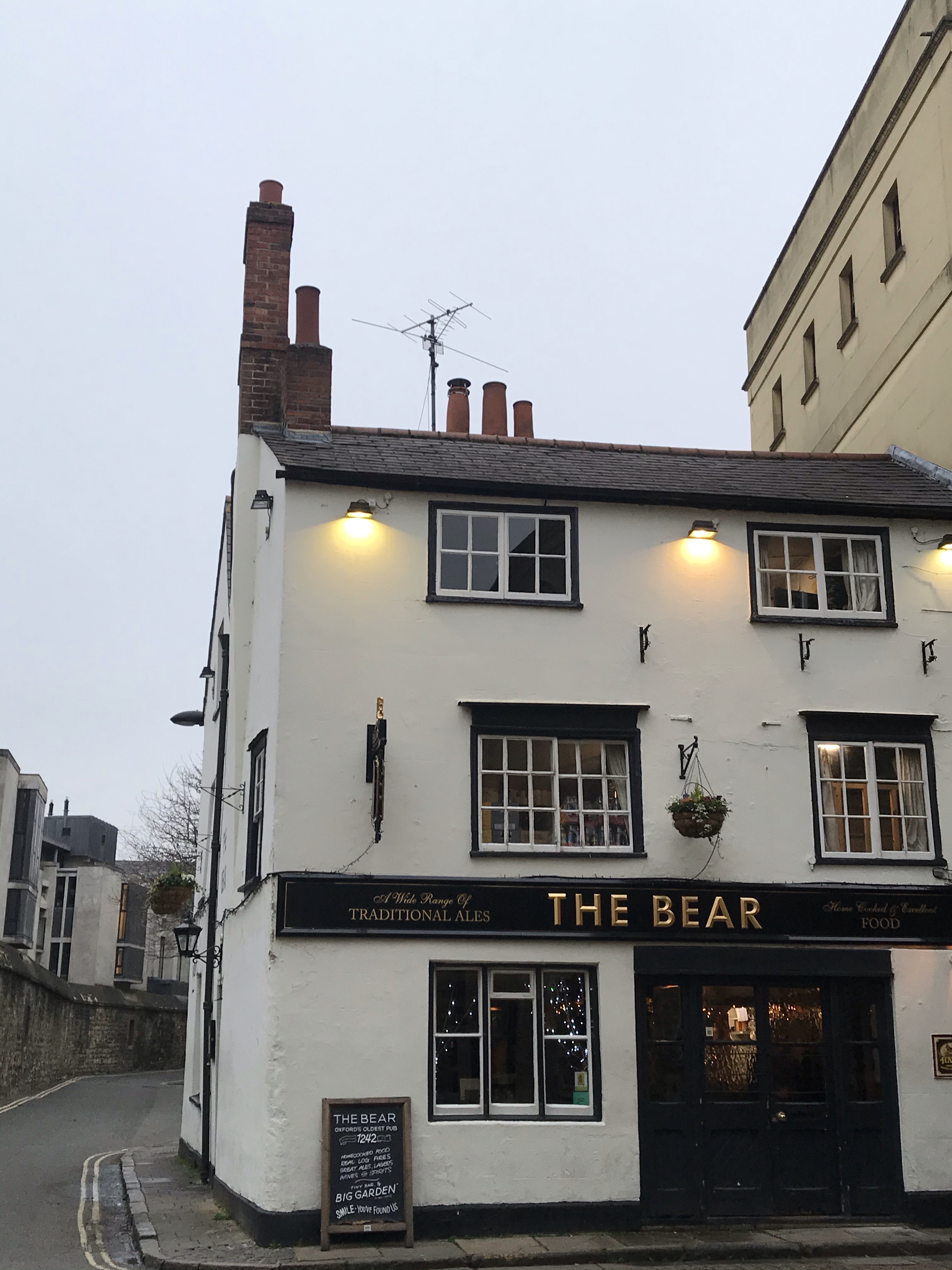 The Bear Inn is the oldest pub in the quaint town of Oxford. A distinctive feature of the Bear is a collection of over 4,500 snippets of neckties. Tie ends were clipped with a pair of scissors in exchange for half a pint of beer. These are now displayed in glass-fronted cases on the walls and even the low ceiling.