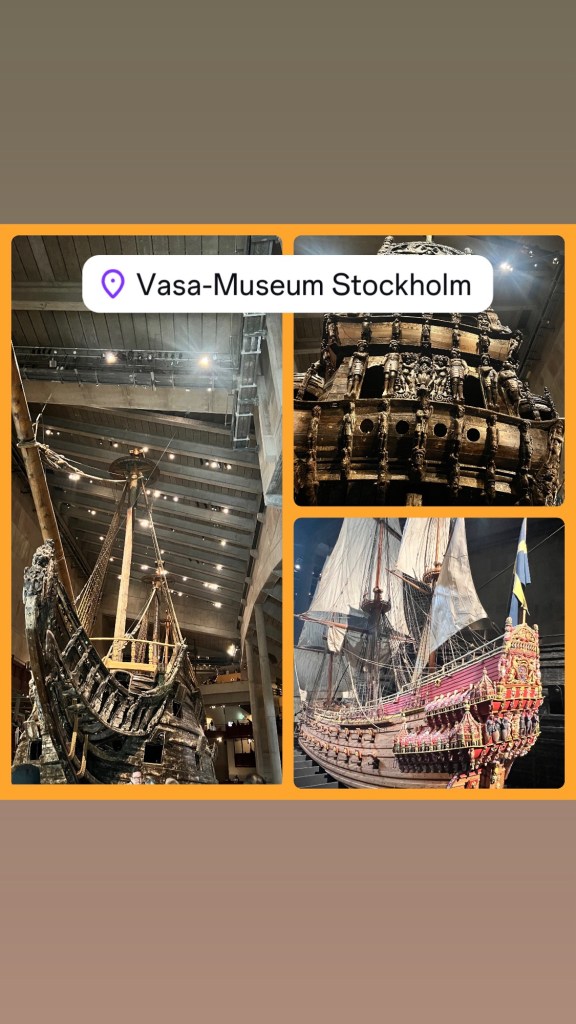 Rick Steves tour started with a walking tour with Haakon, a guest lecturer who invited us into his home in old town of Gamla Stan. Some interesting facts: Alcohol not sold in supermarkets and not after 3 on Saturday. Priests more likely to be women. All women faces on Swedish bills including director Ingmar Bergman, actress Greta Garbo and author Astrid Lindgren. Most secular people but everyone studies religion. Plastic water bottles have caps attached. Dogs cannot be left longer than 4 hours, tho not enforced. Parental leave is 18 months for each child, double for twins. Both parents work, no housewives. Employment not disparate among sexes. Vehicles yield to pedestrians but bicycles do not. Good morning in Swedish sounds like moron in English. Cashless society, all transactions Apple Pay or Swish, our Venmo. Stockholm cellular available much of the time.